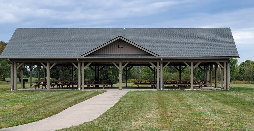 Outdoor Pavilion - 2 Large Charcoal Grills, 24 picnic tables 8’ long, Includes electric, lights and clean bathrooms, Handicap accessible