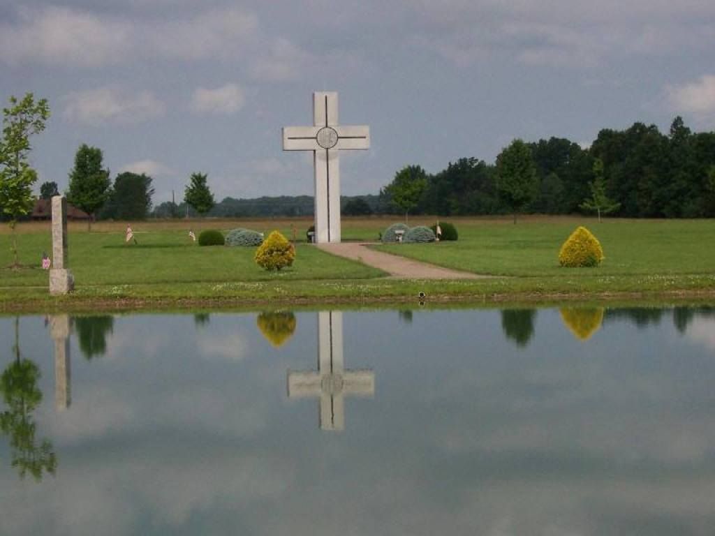 A twenty foot tall white axed granite Cross was erected on the west side of the cemetery pond. A shrine to Our Lady of Fatima was erected on the north edge of the cemetery.
